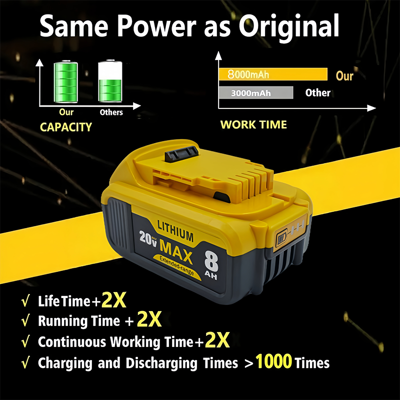 8AH DCB200 Replacement for Dewalt 20V MAX Battery Compatible with Dewalt 20Volt
